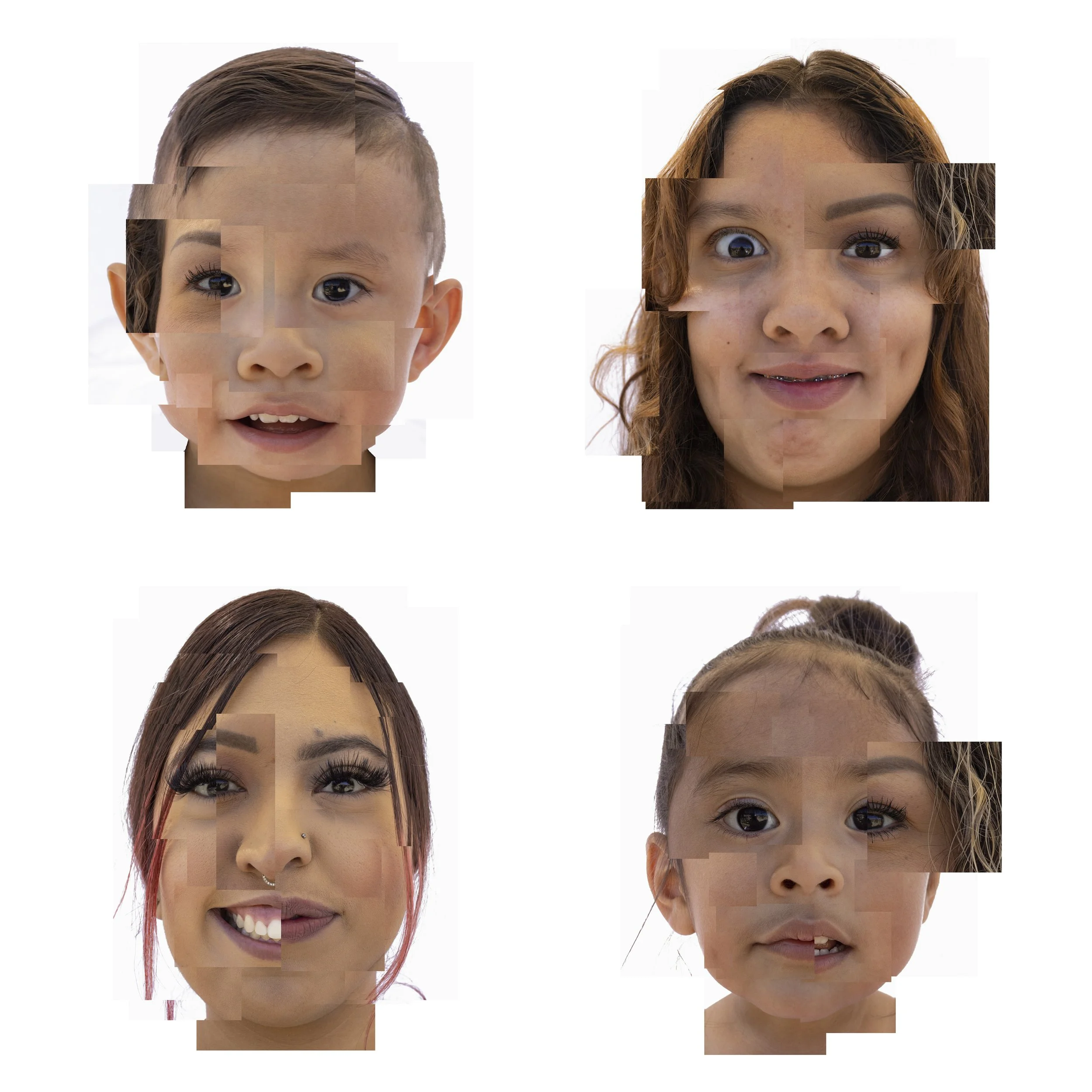 For this project I examine 4 children, who share a mother but not a father. By creating a series of 4 jigsawed portraits, I emphasize each child’s individual features more than their faces as a whole. Each portrait also includes a piece of the mothers face, as a representation of the person who connects them to one another. Through the absence of a full portrait of the mother, viewers are able to create a portrait of her in their minds using the provided portraits as a guide. This process of comparing each child’s features to one another and attempting to piece together what their mom might look like demonstrates how a parent becomes a literal and physical part of their children.